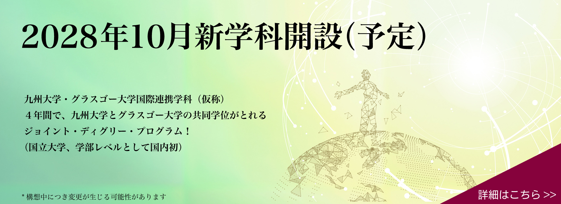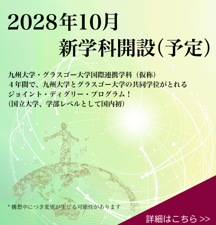 共創学部に新学科!2028年10月開設(予定) 九州大学・グラスゴー大学国際連携学科(仮称) 学部レベルでは国内国立大学「日本初」のジョイント・ディグリー・プログラム(JDP)